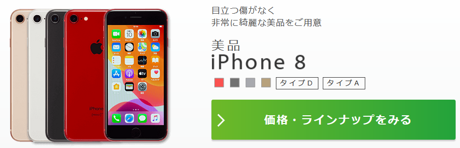 本体はきれいな状態ですが、iPhone 8は中古ではそこそこ安く出回っており、64GB以上の容量が欲しい人は中古ショップで探すという選択肢もありです。