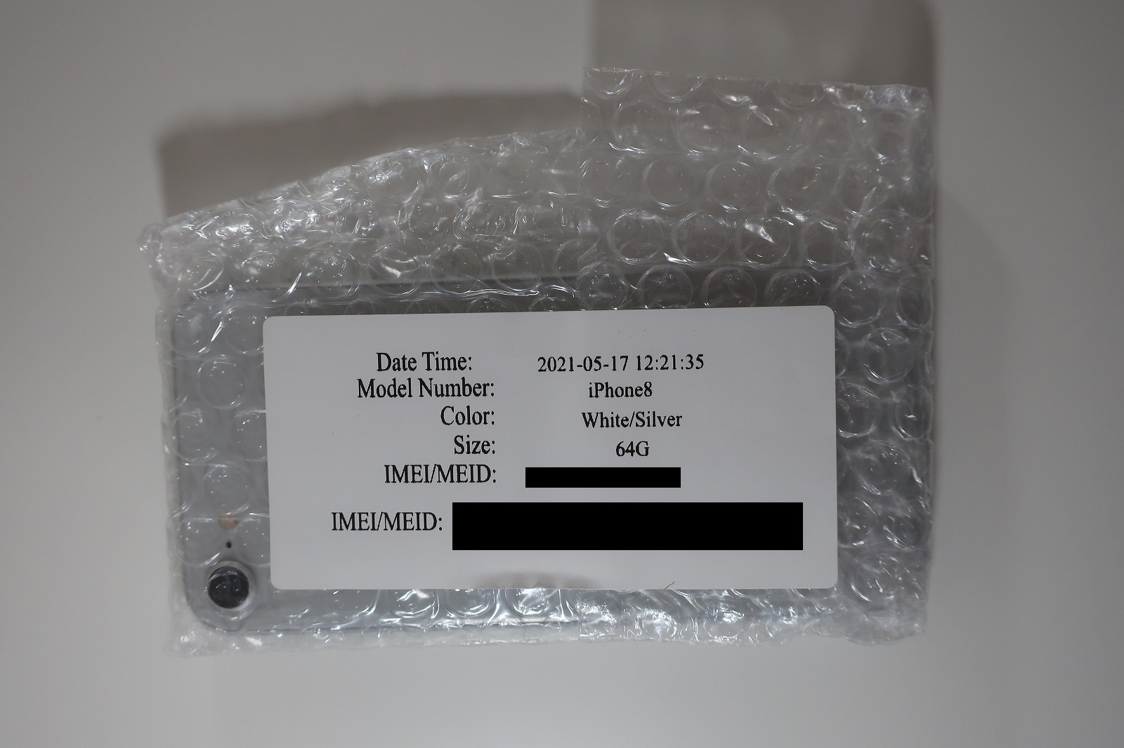iPhoneの箱、ケーブル、充電器はなく本体のみでプチプチに包まれています。