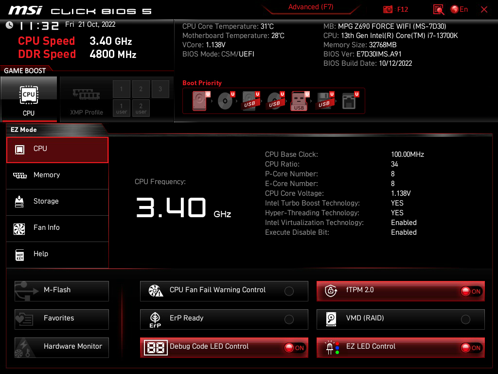 今回Raptor LakeのCore i7 13700Kを予約していて、その検証にMPG Z690 FORCE WIFIを使用したいのでUEFIを最新にしてみます。