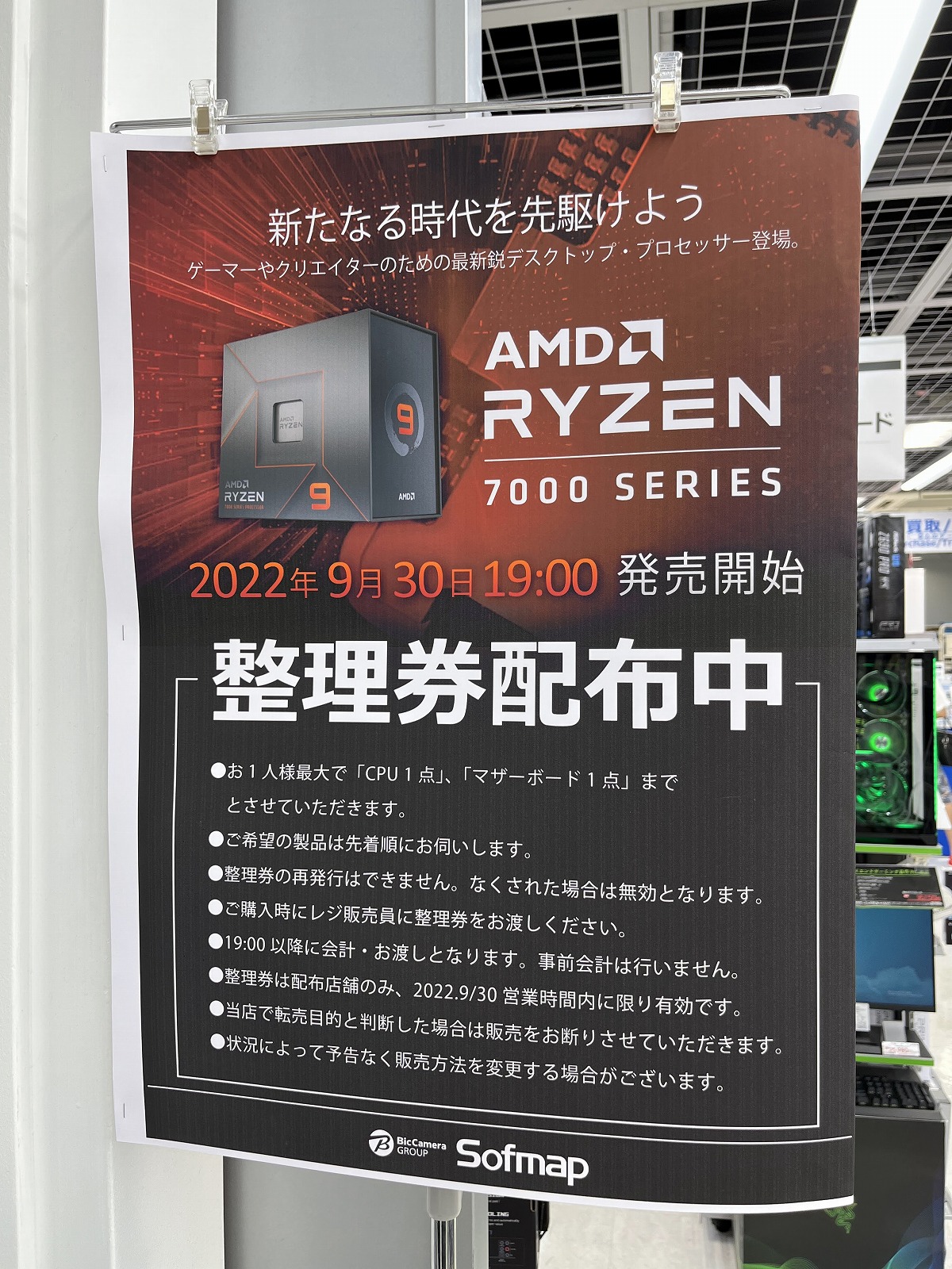 19:19 sofmap レジ前に人なし 店員の方がRyzen 7000シリーズについての声かけはフロアで行っていました