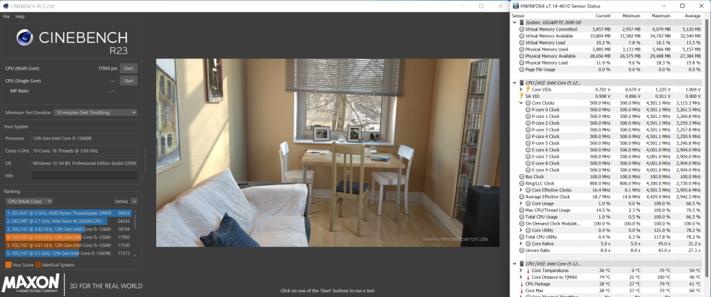 | 4.5GHz | 4.0GHz | 1.200V | 1.188V | 29.0W | 193W | 17950pts | 79℃ |