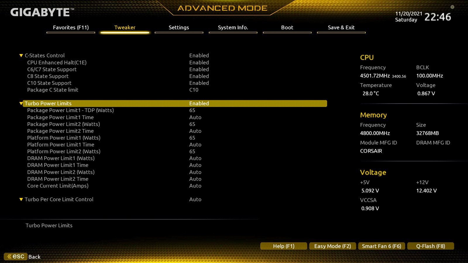 UEFIの設定にてPackage Power LimitとPlatform Power Limitの違いが分からなかったので、とりあえず一緒にしてみました。