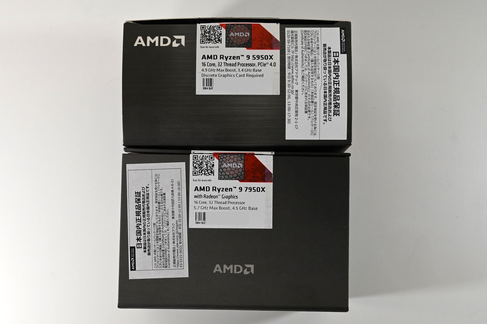 “Zen4世代”の「Ryzen 9 7950X」と”Zen3世代”の「Ryzen 9 5950X」を比較していきます。