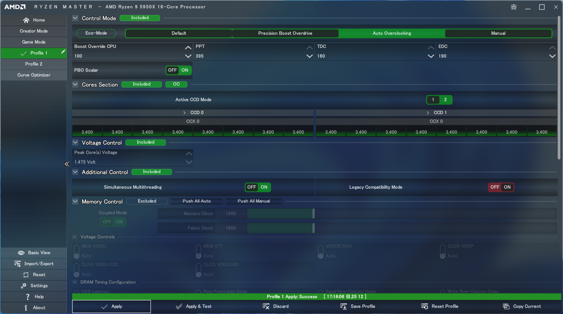 5950Xはdefault設定が結構バランスがいいので、特に設定を弄らないでも冷却はそこまで大変ではありません。