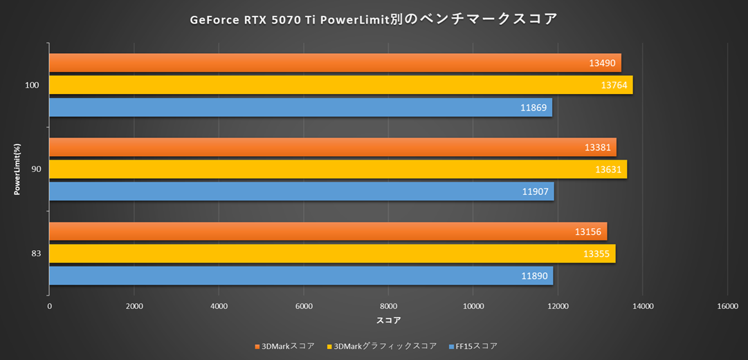 PL100%から83%に制限しても3DMarkではわずか2.5%しか変わりません。