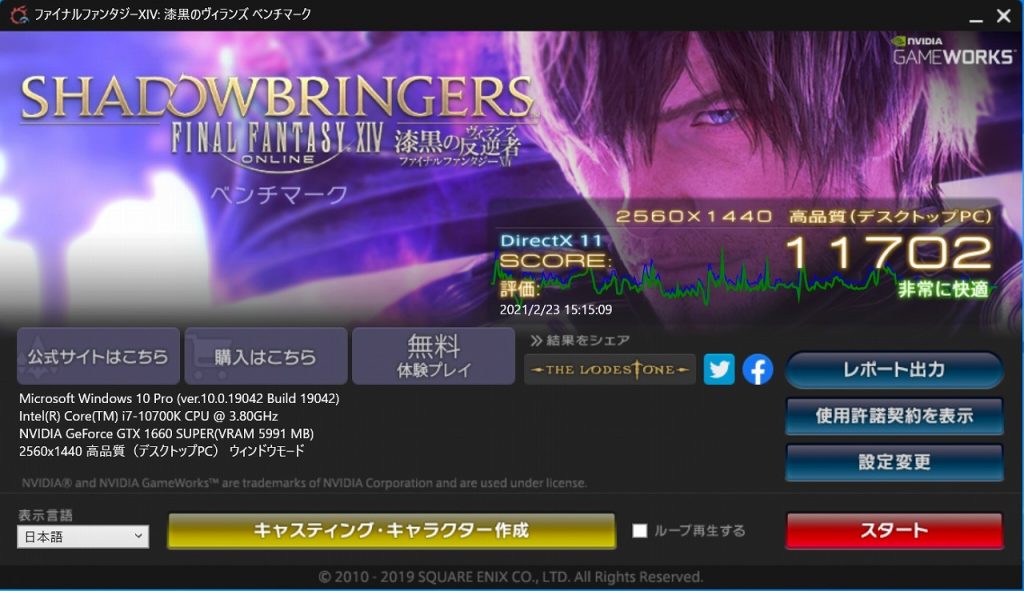 | FINAL FANTASY XIV WQHD 高品質(デスクトップ) | 231W | 190W | 11702 |